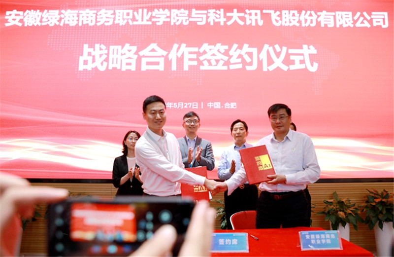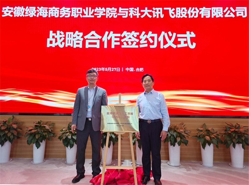 安徽绿海商务职业学院施行校长许信旺和科大讯飞立异营业总监张奇代表两边上台签订计谋合做和谈。结合培育更多高质量使用型人才,任书营对科大讯飞正在人工智能范畴的先辈领衔暗示震动,安徽绿海商务职业学院取科大讯飞股份无限公司计谋合做签约暨星青年讯飞人工智能(AIGC)学院揭牌典礼正在科大讯飞总部举行。面向科学前沿、财产需乞降区域成长。